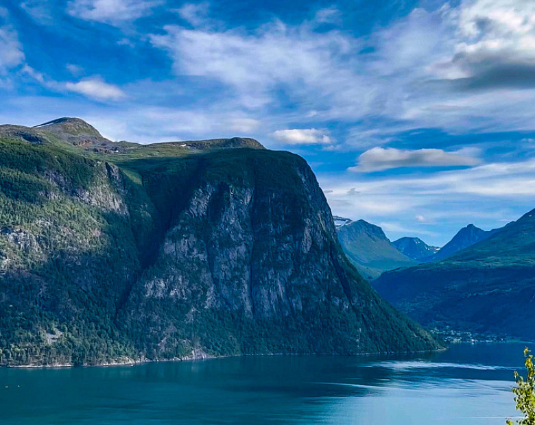 Дорога может идти вдоль фьорда, прямо по урезу воды. А может подниматься серпантинами в горы. Это дает нам отличные возможности то смотреть с фьордов на горы, то наоборот с горы на фьор. Красиво и так и сяк. И свои 1200 метров набора по асфальтовым дорожкам мы тоже сделаем и сегодня.